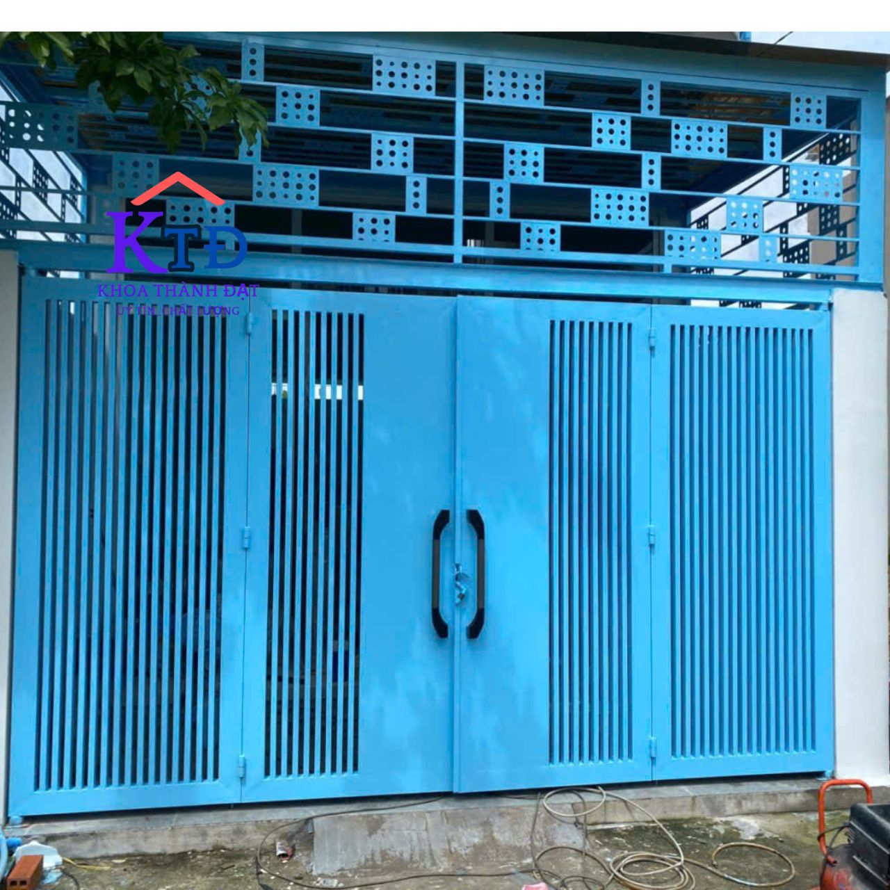 Với những ngôi nhà có mặt tiền vừa phải, cửa sắt 2 cánh là giải pháp tối ưu. Kiểu cửa này giúp tiết kiệm diện tích, dễ sử dụng mà vẫn đảm bảo an toàn tuyệt đối. Khi làm cửa sắt 2 cánh, Khoa Thành Đạt thường tư vấn khách hàng chọn sắt hộp dày, kết hợp sơn tĩnh điện cao cấp. Để cửa luôn sáng bóng, không bị gỉ sét theo thời gian.